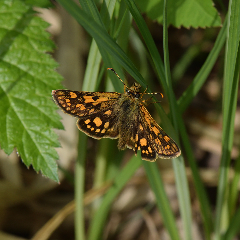 Gelbwürfeliger Dickkopffalter (Carterocephalus palaemon) auf Gras