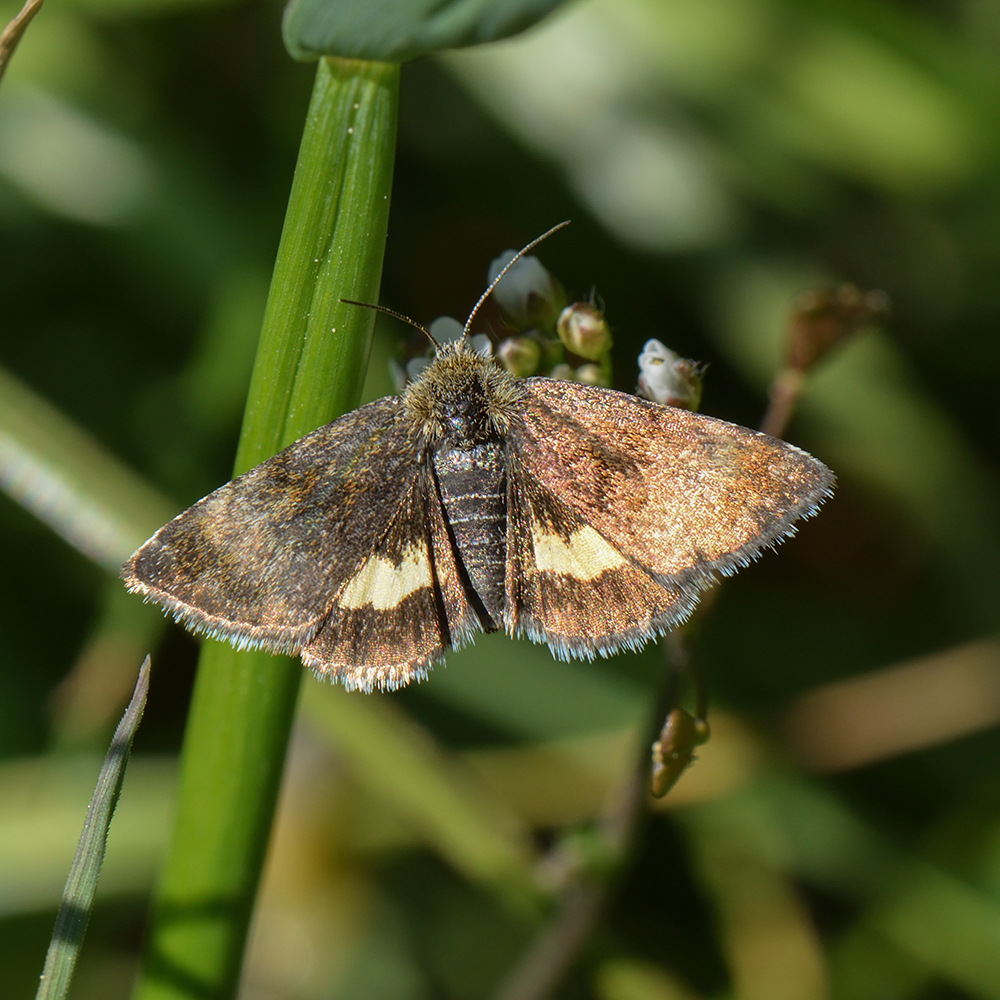 Hornkraut-Tageulchen (Panemeria tenebrata) auf Hirtentäschel