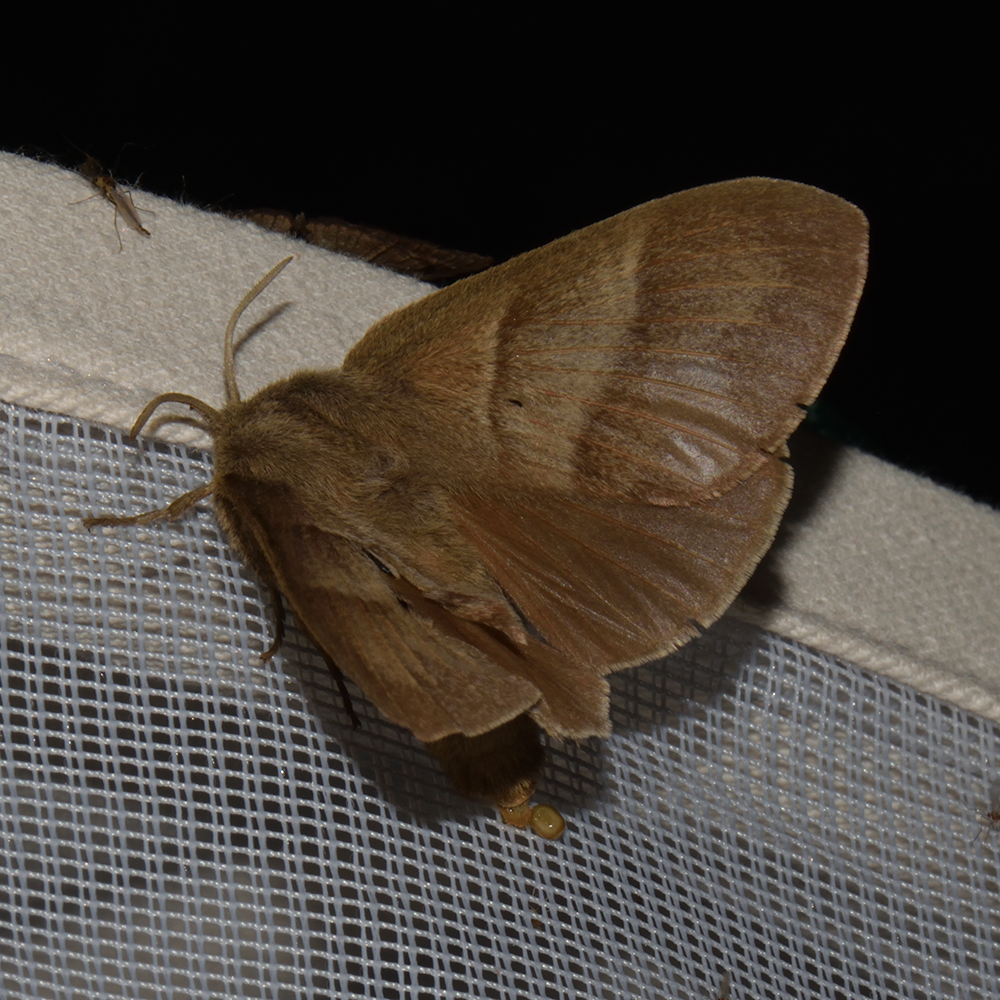Brombeerspinner (Macrothylacia rubi) beim abendlichen Leuchten