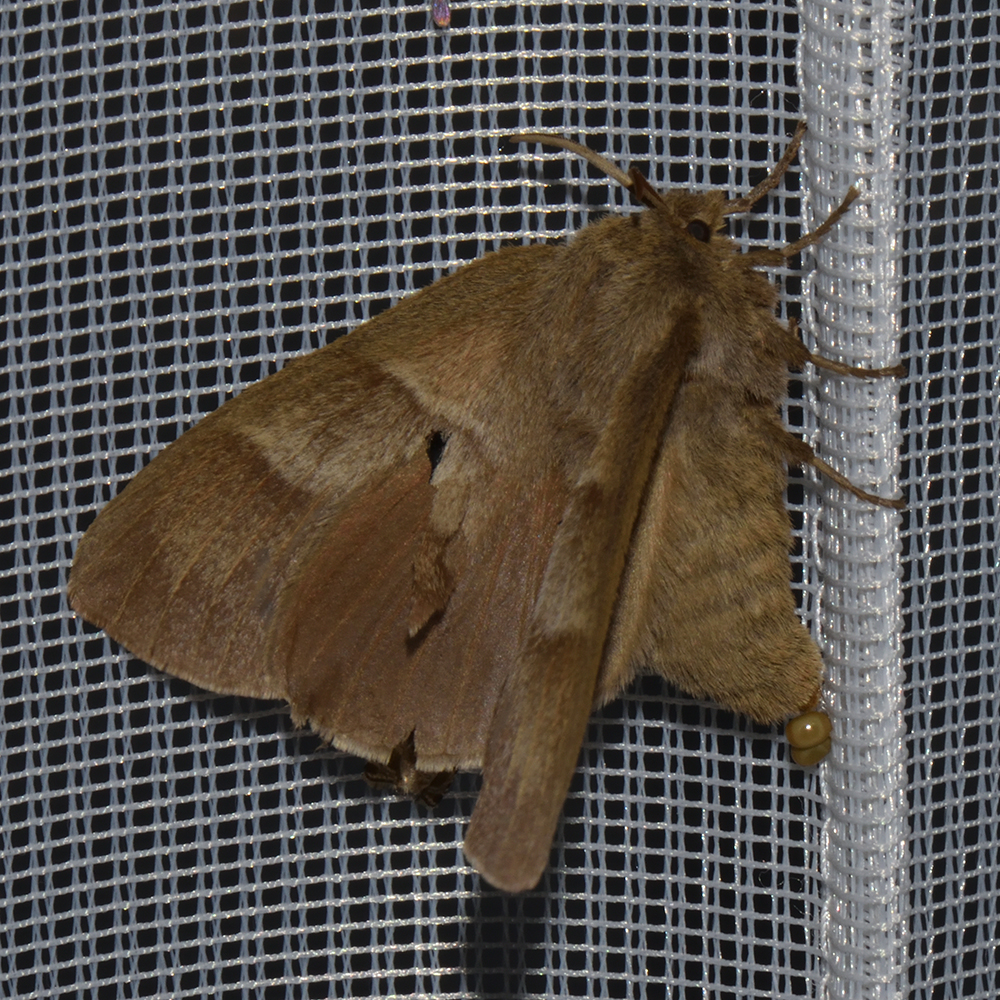 Brombeerspinner (Macrothylacia rubi) beim abendlichen Leuchten