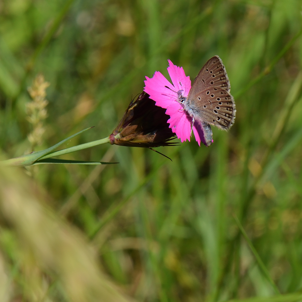 Kreuzenzian-Ameisenbläuling (Phengaris rebeli) auf Karthäuser-Nelke