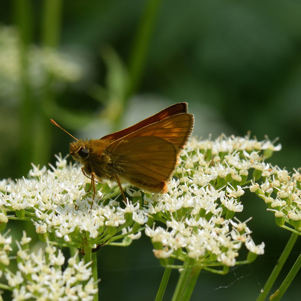 Mattscheckiger Braun-Dickkopfalter (Thymelicus acteon) auf Giersch