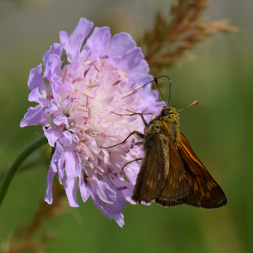 Rostfarbiger Dickkopffalter (Ochlodes sylvanus) auf Skabiose
