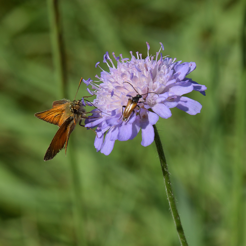Braunkolbiger Braundickkopffalter (Thymelicus sylvestris) auf Skabiose