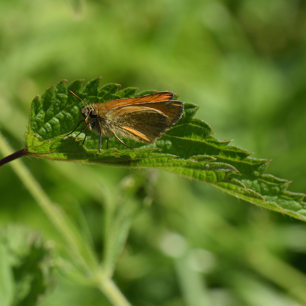 Braunkolbiger Braundickkopffalter (Thymelicus sylvestris) auf Brennnessel