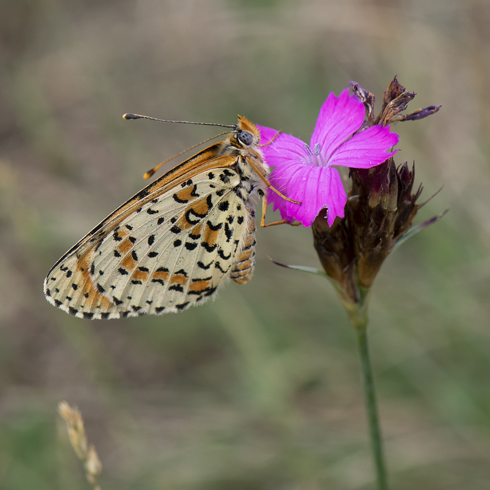 Roter Scheckenfalter (Melitaea didyma) auf Karthäuser-Nelke