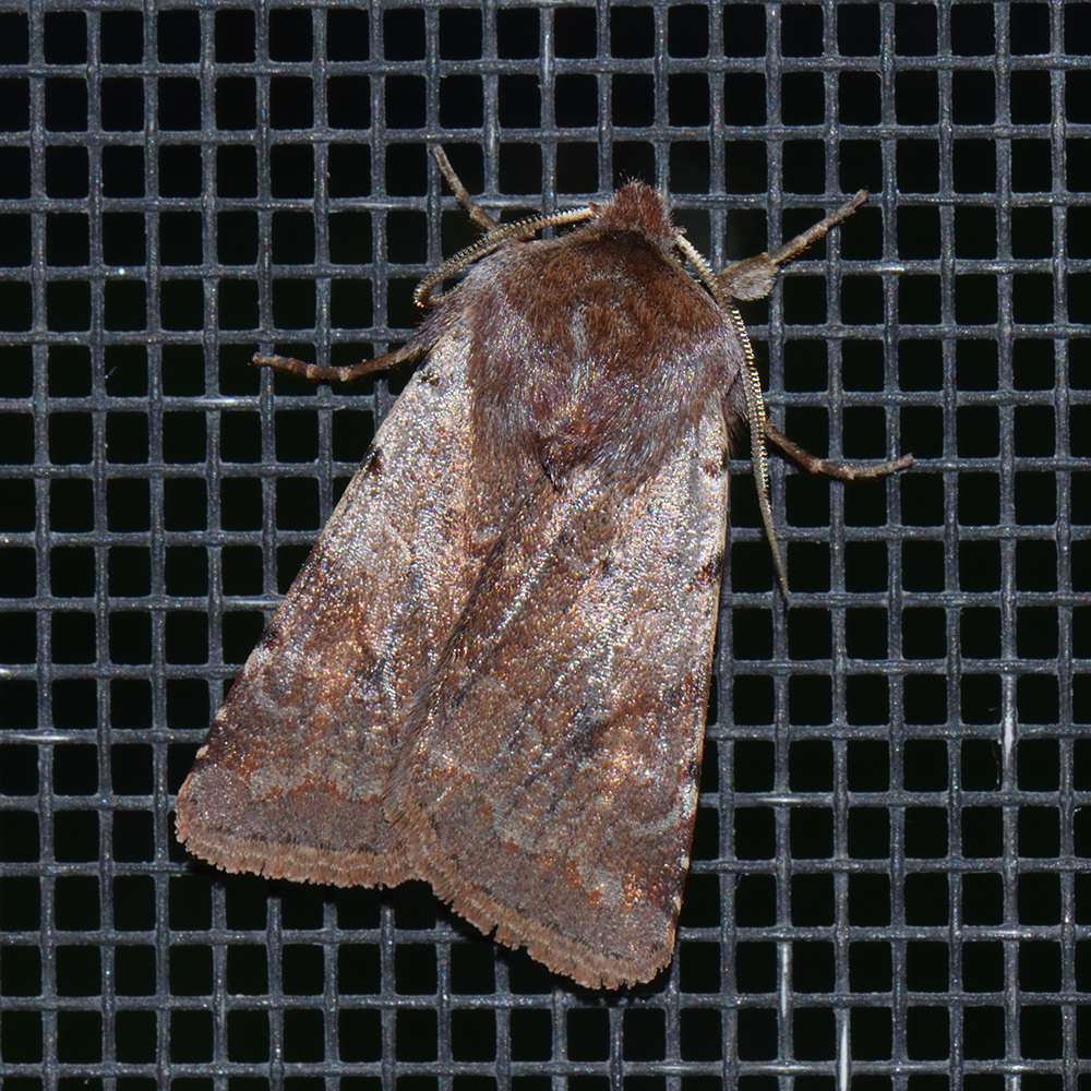 Rotbraune Frühlings-Bodeneule (Cerastis rubricosa) beim abendlichen Leuchten
