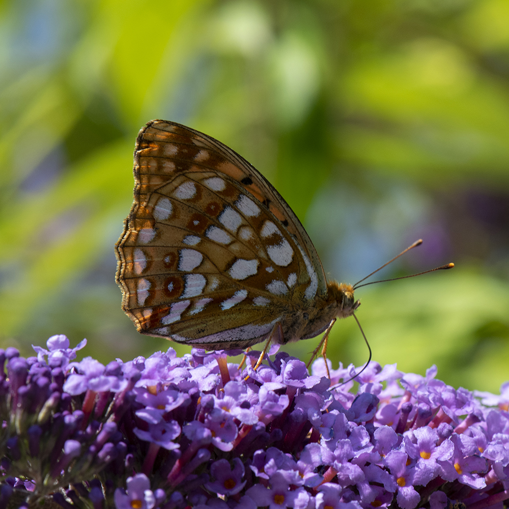 Feuriger Perlmutterfalter (Fabriciana adippe) auf Schmetterlingsflieder