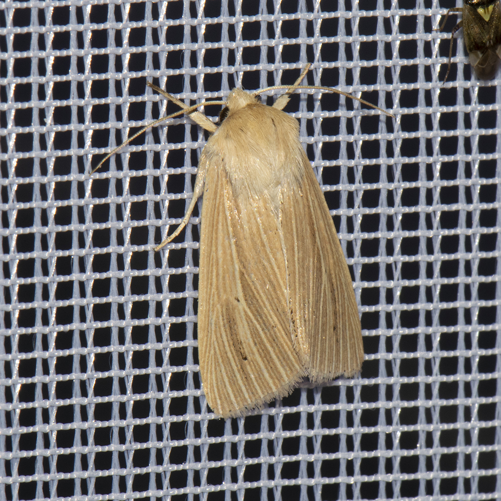 Bleiche Graseule (Mythimna pallens) beim abendlichen Leuchten
