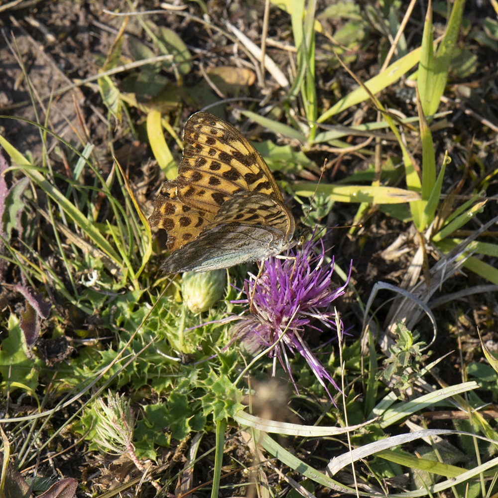 Kaisermantel (Argynnis paphia) auf Stengelloser Distel