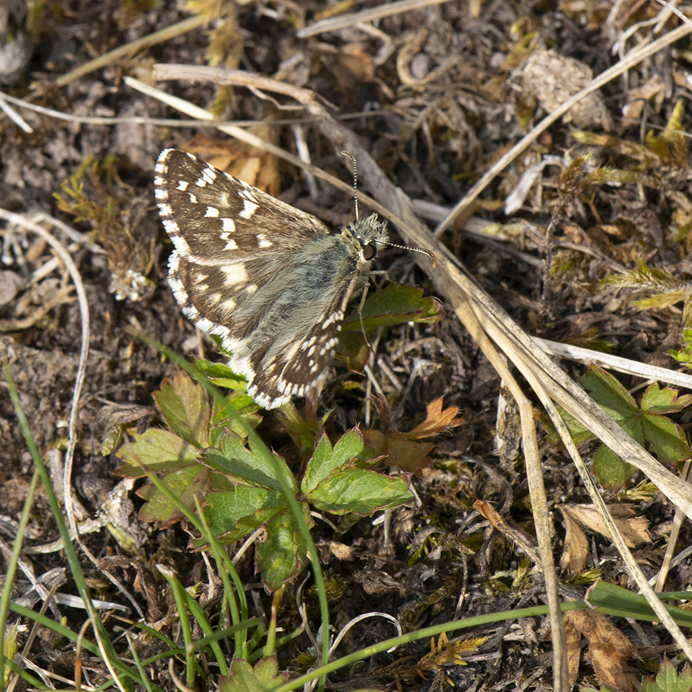 Spätsommer-Würfel-Dickkopffalter (Pyrgus cirsii) auf Wiese