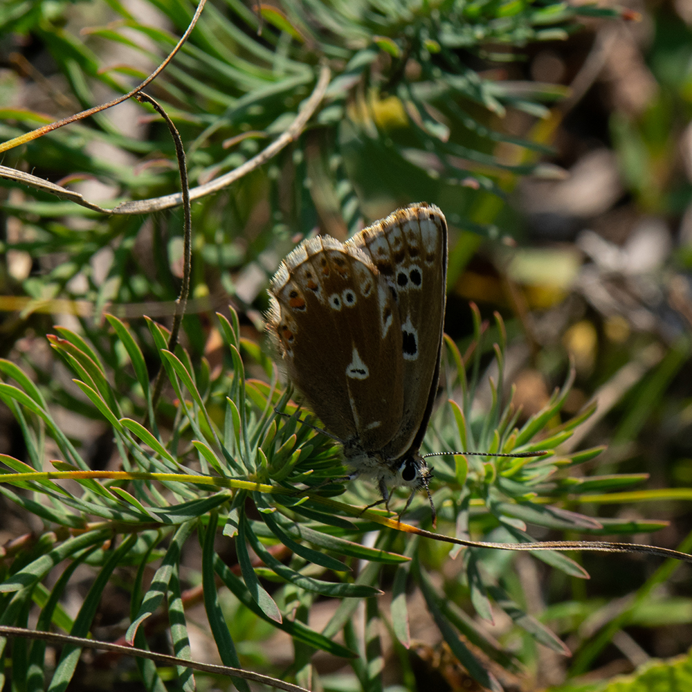 Silbergrüner Bläuling (Lysandra coridon) Aberration auf Wiese