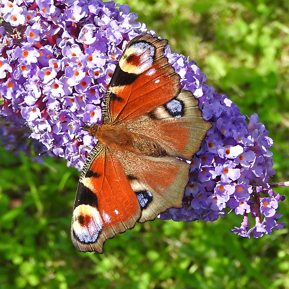 Tagpfauenauge (Aglais io) auf Schmetterlingsflieder
