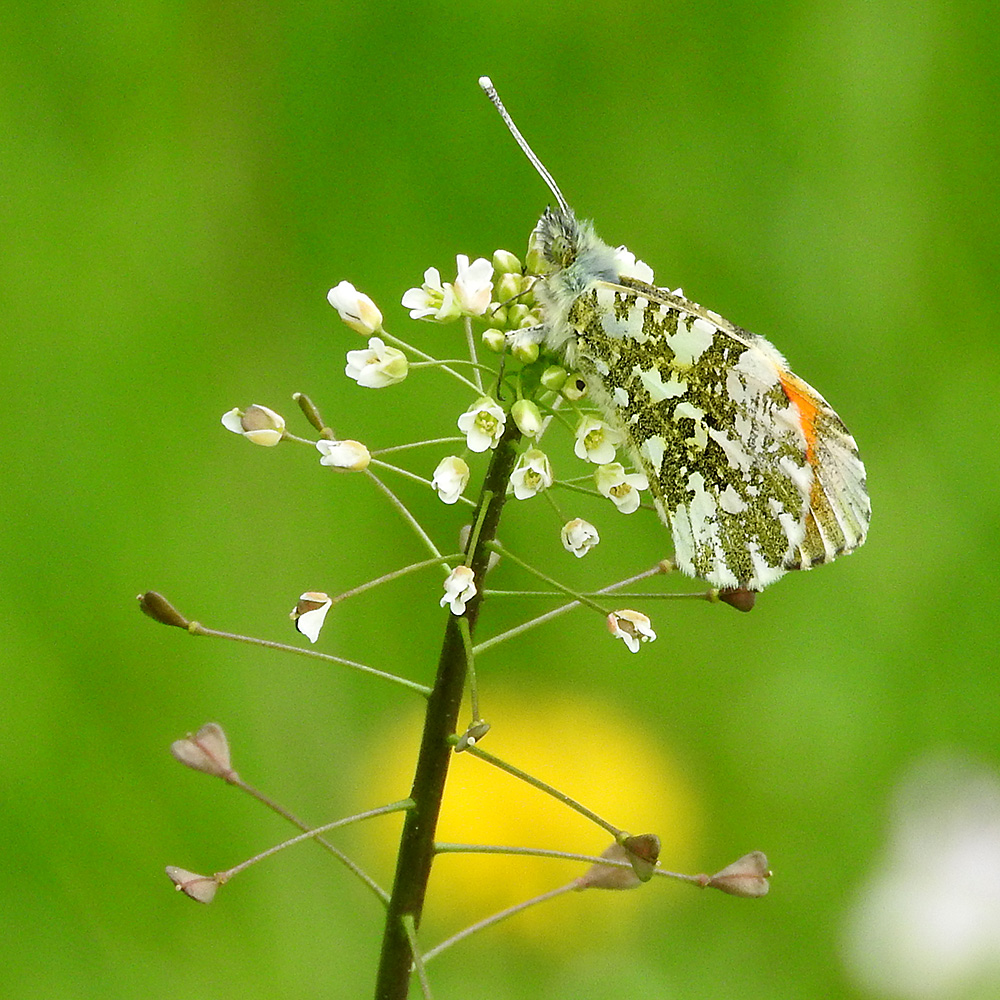 Aurorafalter (Anthocharis cardamines) auf Hirtentäschelkraut