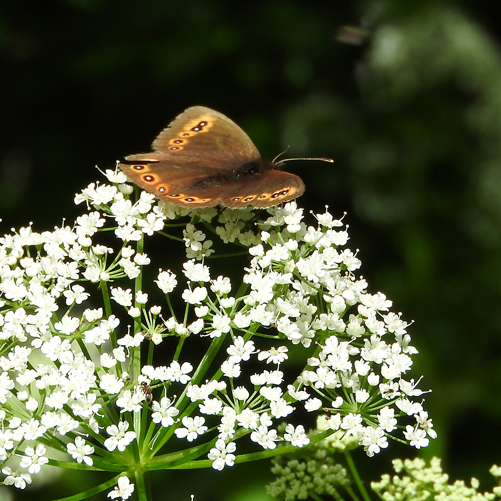 Rundaugen-Mohrenfalter auf Gierschblüte