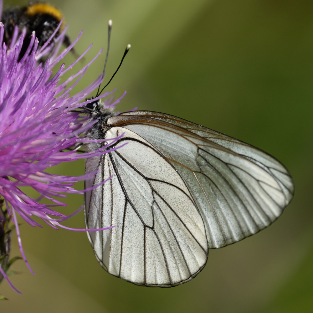 Baumweißling (Aporia crataegi) auf Distel