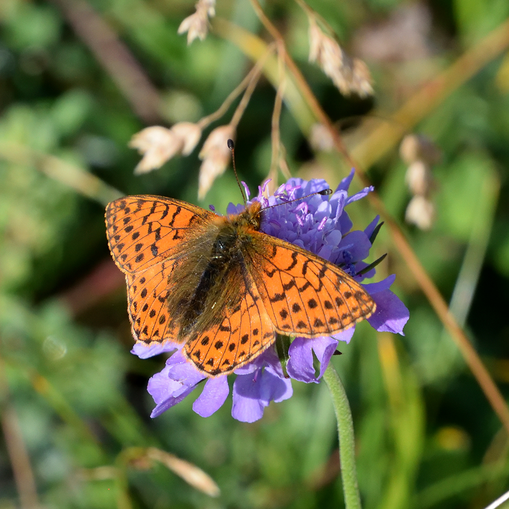 Kleiner Hochalpen-Perlmutterfalter auf Skabiose