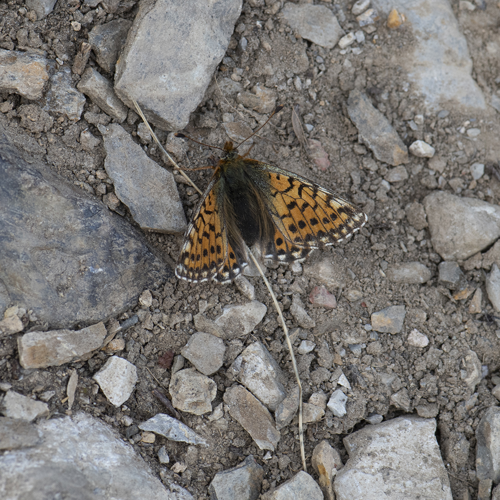 Kleiner Hochalpen-Perlmutterfalter auf Stein