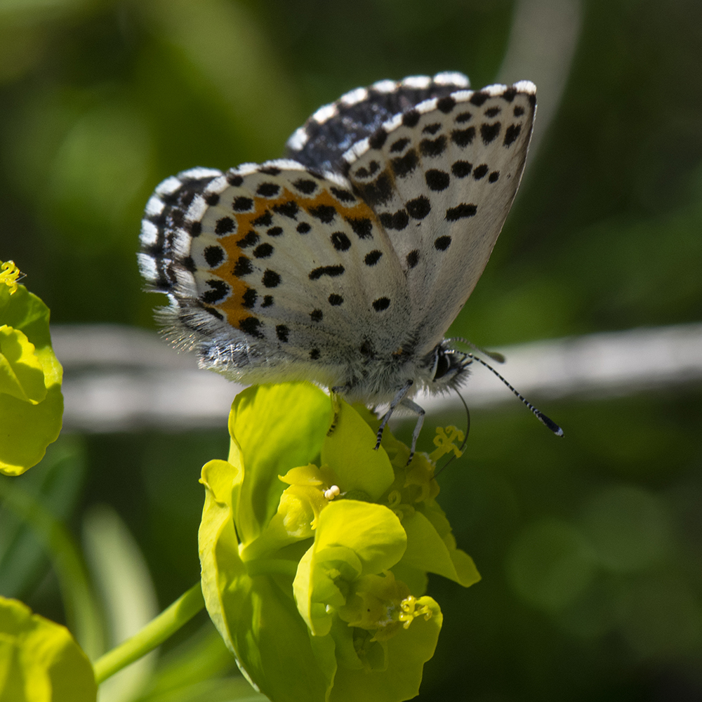 Fetthennen-Bläuling (Scolitantides orion) auf Wolfsmilch